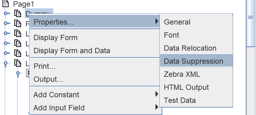 - Locate the form for which you want to suppress output when empty.